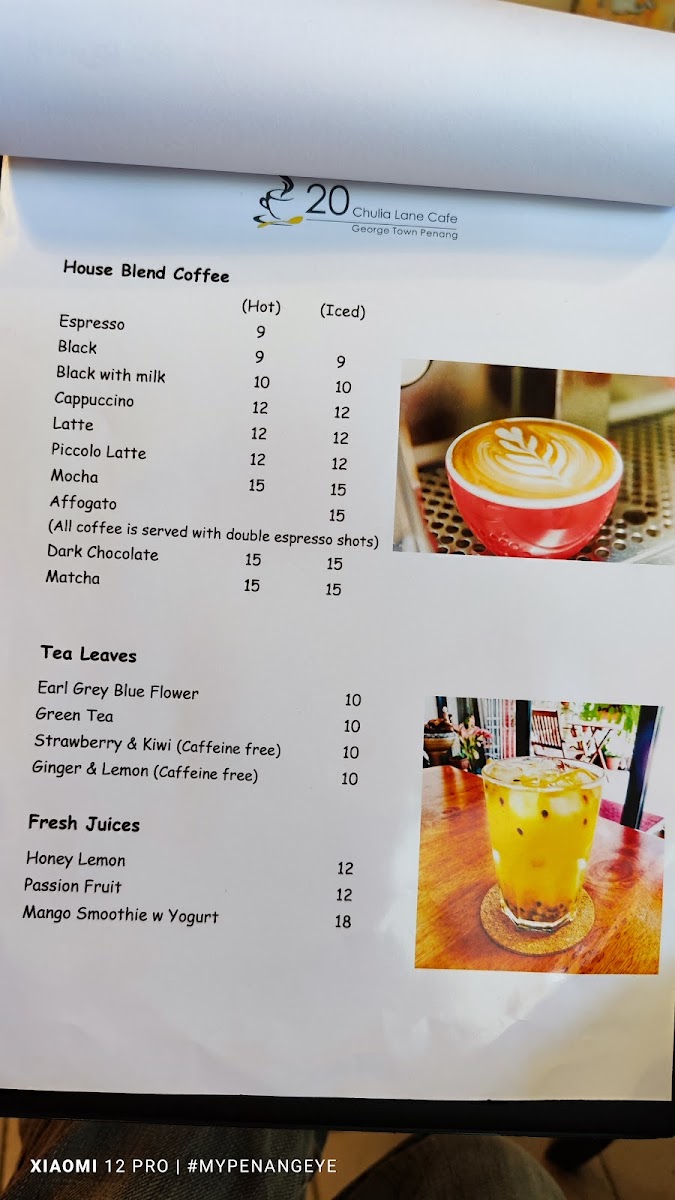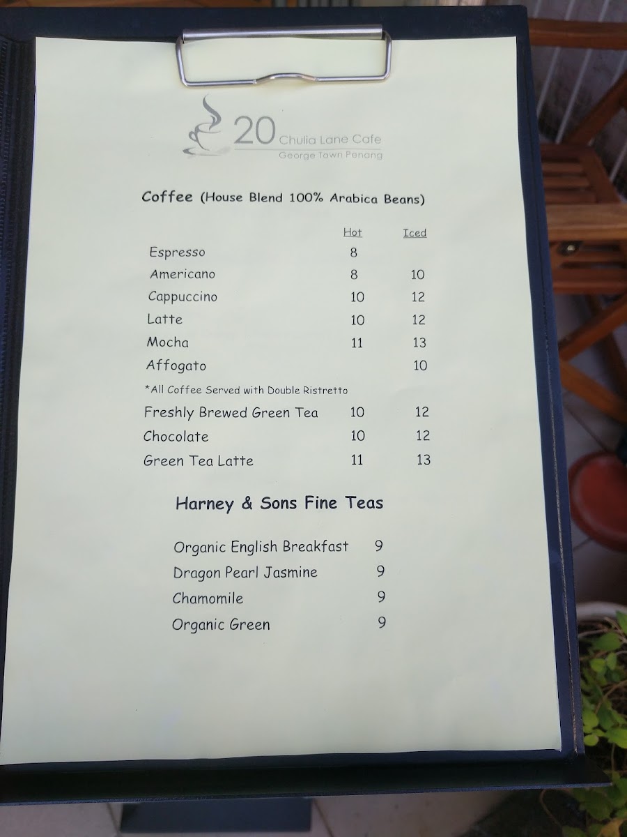 20 Chulia Lane Cafe Menu
